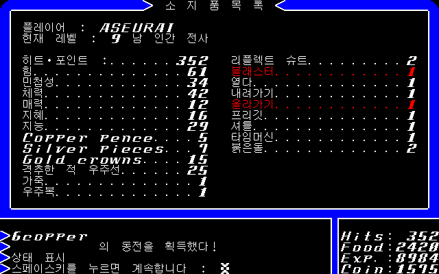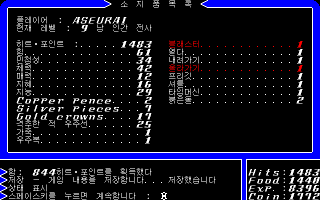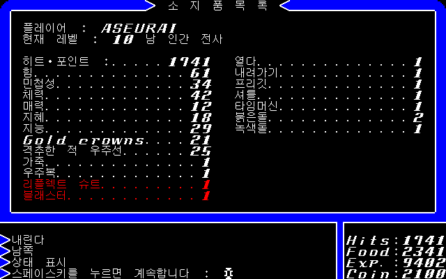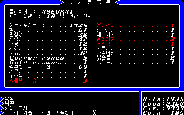 이로서 저는 경험치 9999의 10레벨 전사가 되었습니다. 아마 여기서 더는 성장하지 않을 듯 합니다.