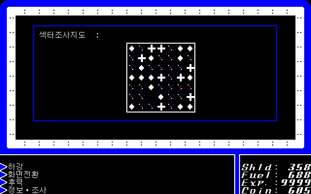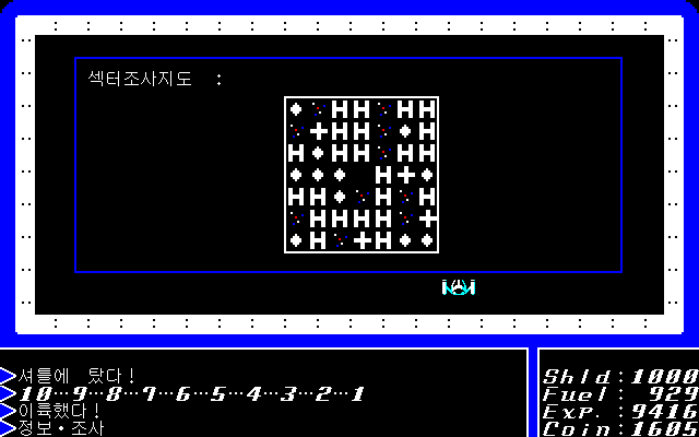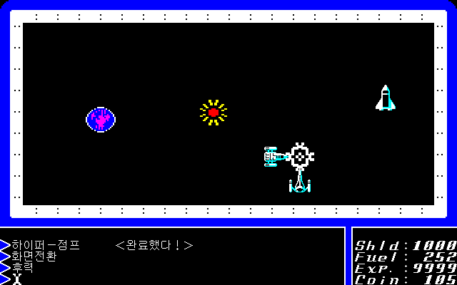 드디어 모든 우주 49개 섹터의 모든 적을 다 물리쳤습니다... 만, 다 정리하고 찾아봐도 모두 다 태양이고, 착륙 가능한 행성은 지구 외엔 없었습니다. 전에 어딘가에서 읽기로는 우주에서 현자를 데리고 와야 한다고 들었던 거 같은데, 제가 착각했나봅니다. 이야기를 들어보니 울티마 1에서는 스페이스 에이스 칭호만 얻으면 우주에서 할 일은 끝이라고 하더군요...