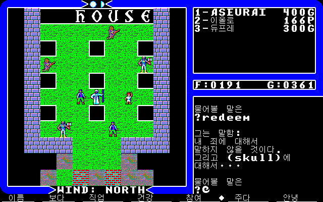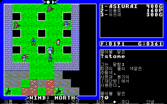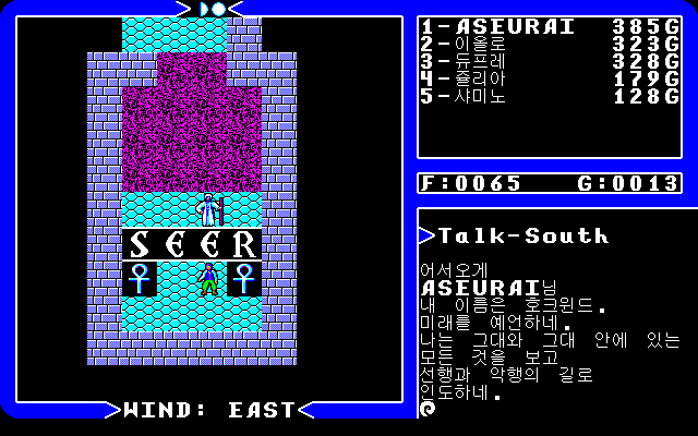 다시 로드 브리티쉬의 성으로 왔습니다. 여기 1층에는 미덕을 판별해주는 호크윈드가 있습니다. 9편에서도 목소리로 도와주는 중요인물이죠.