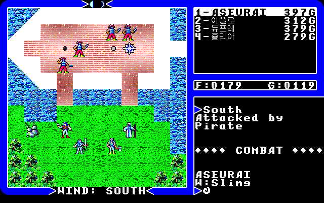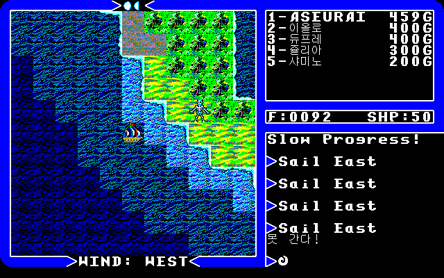 탐험하다가 해적선을 만났습니다. 5편에서는 해적선이 나타나면 행운이었죠. 공짜 배가 생기니까... 1편에서는 그냥 동전만 주고 가라앉아 버렸는데... 여기서는 어떨까요...