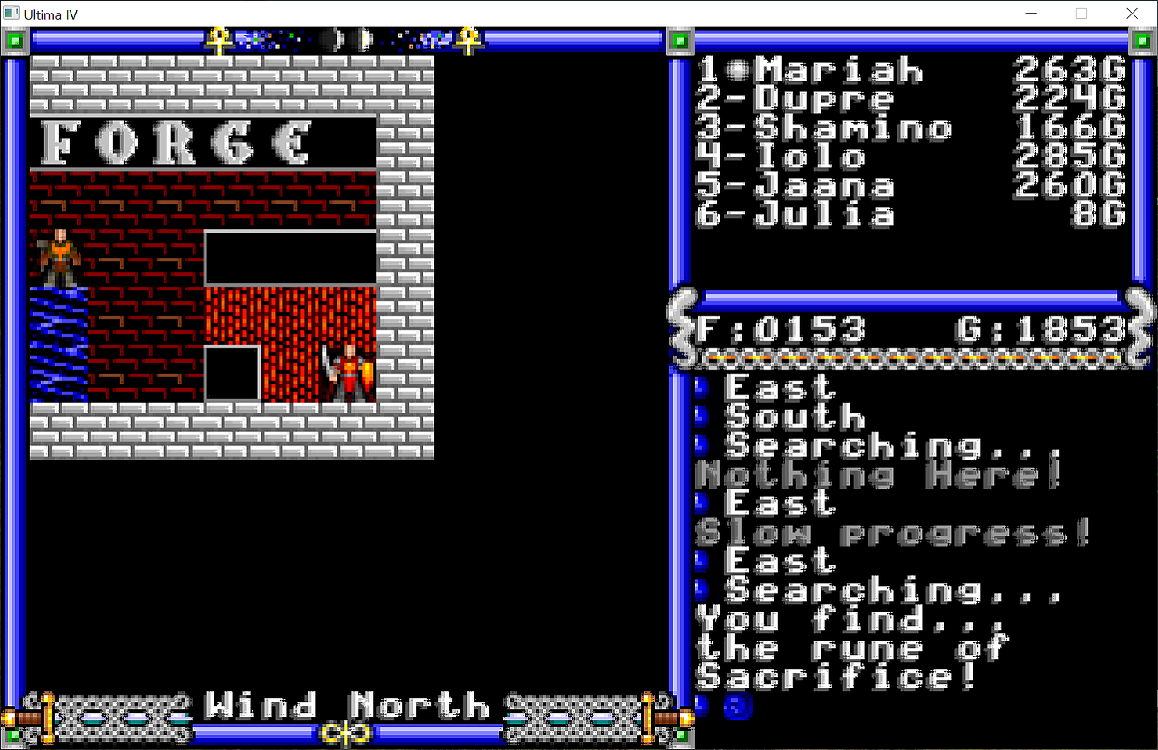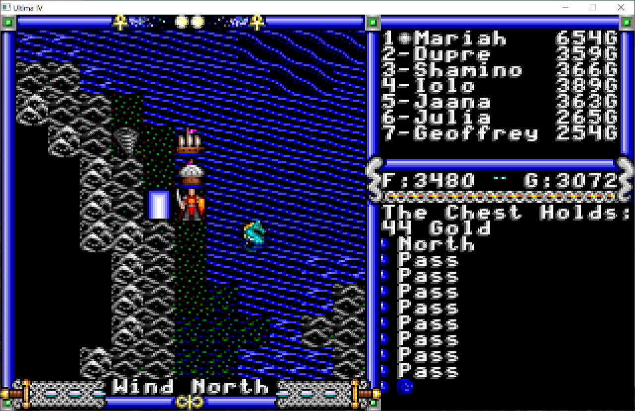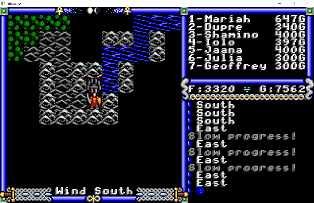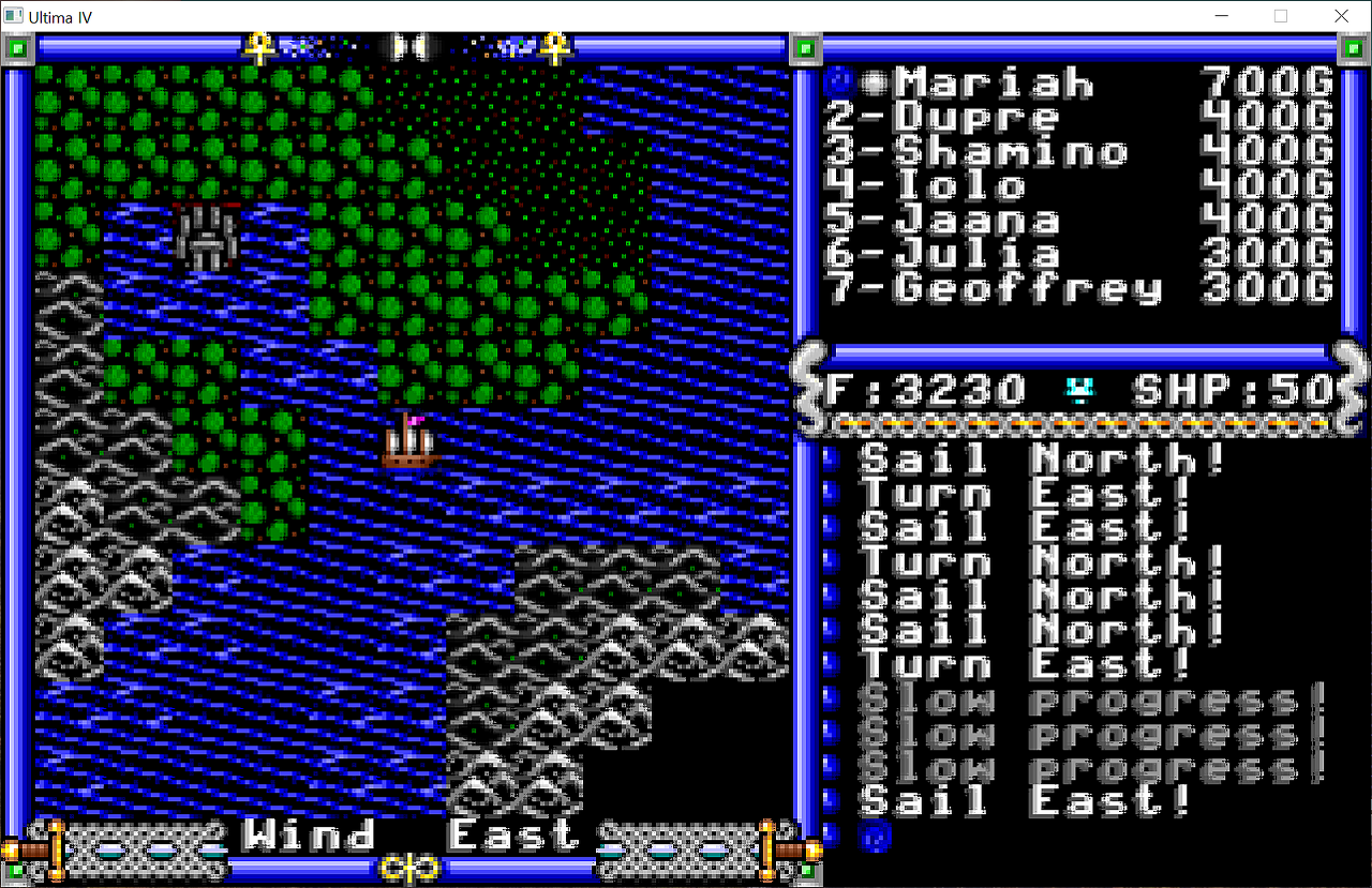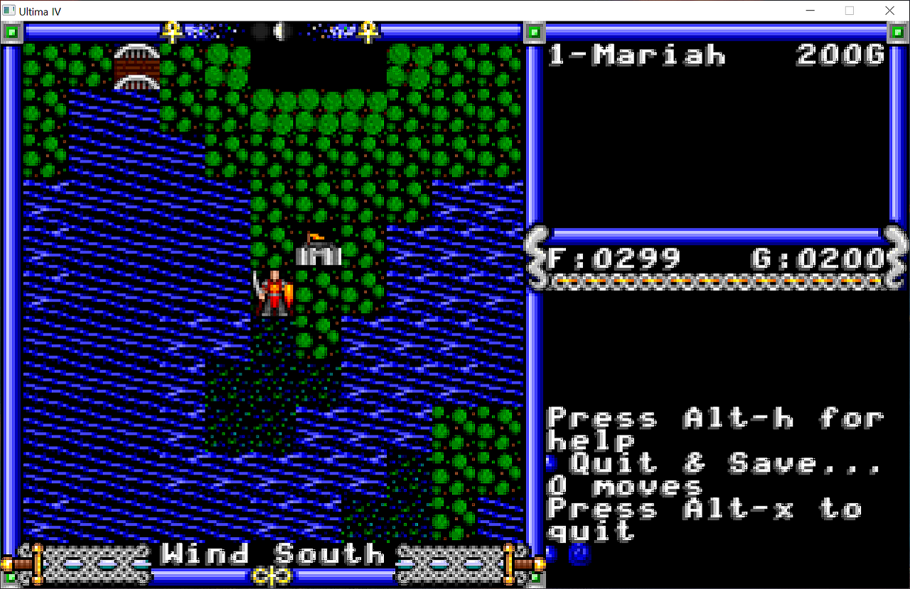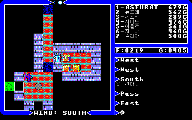 문글로우Moonglow 마을 근처에 있을거라고 생각했던 사원은 생각보다 멀리 떨어진 그 위쪽 섬에 있더군요...