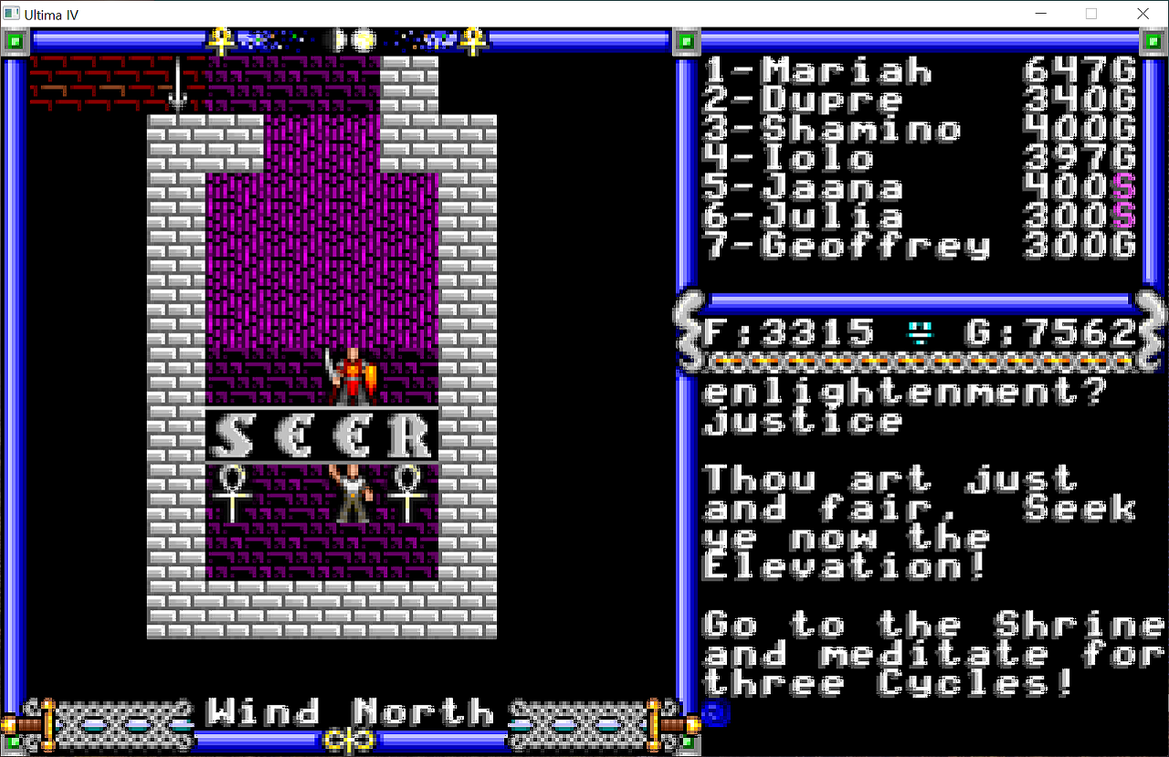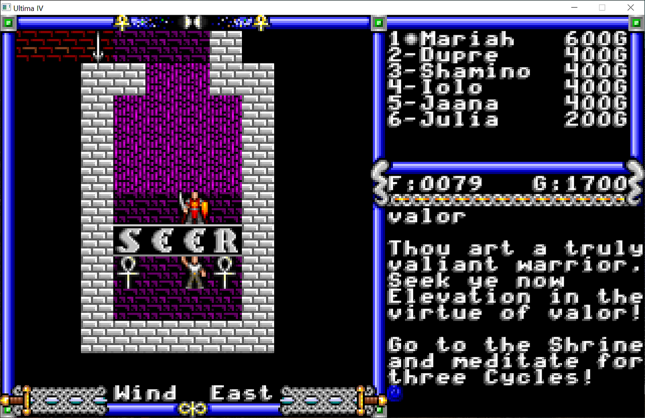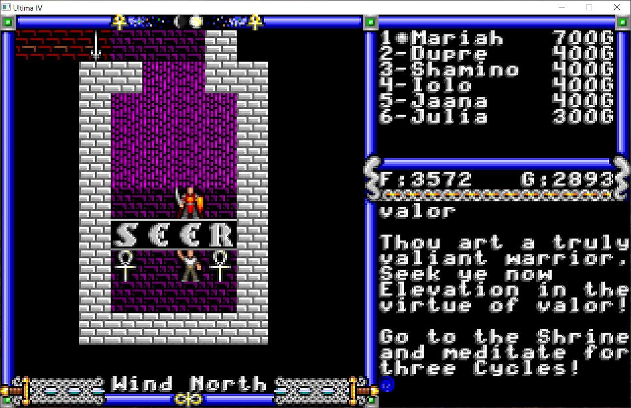 마지막 동료, 겸손의 카트리나를 만났지만 아직 제가 8레벨이 아닌 관계로 동료가 되어주지 않습니다. PC9801버전도 딱 여기까지 했지요.