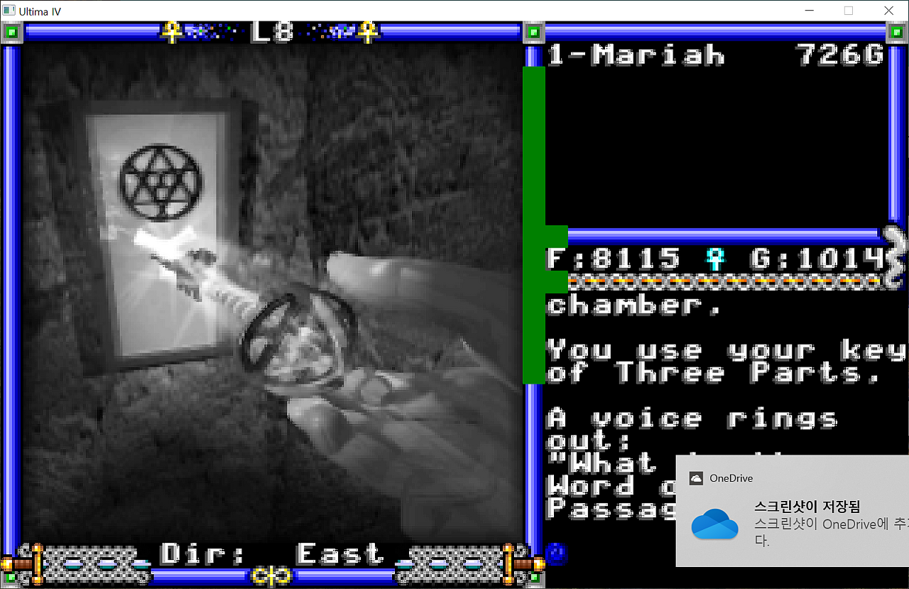 혹시나 또 가능할까 해서 나갔다가 다시 들어와서 두번째 열쇠를 만들어보려 했더니 어딜 감히 꼼수를!!! 아이고 소용없다라고 나옵니다... 꼼수를 부려보려던 아바타는 힘없이 다음 제단 방을 찾아 떠납니다...