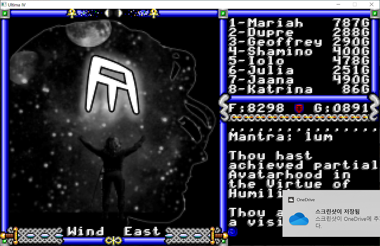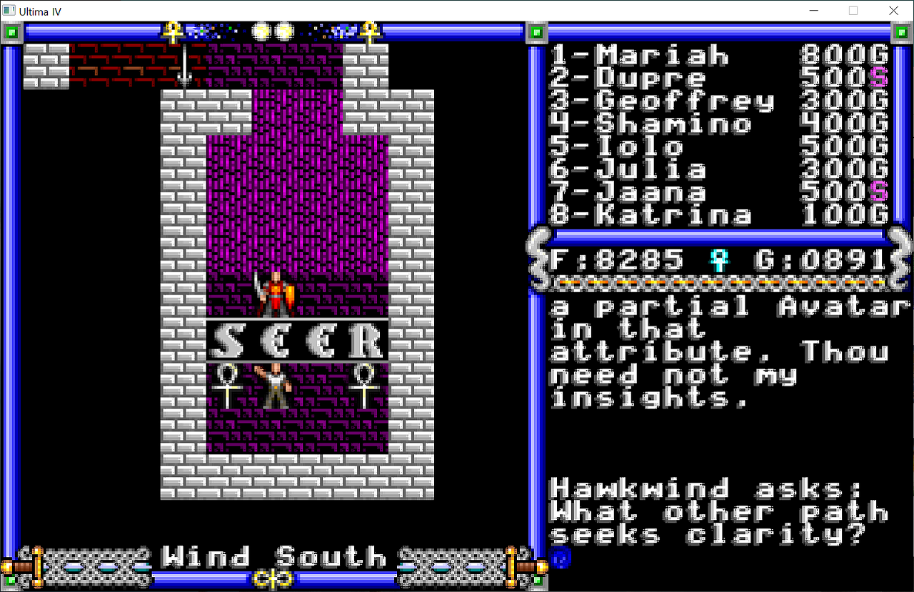 호크윈드도 딱히 별 말을 안해줍니다. 다만 8대 미덕을 보두 물어봐도 더는 보이지 않는다고 말해주는 걸로 봐서는 이제 완성이 된건가 봅니다.