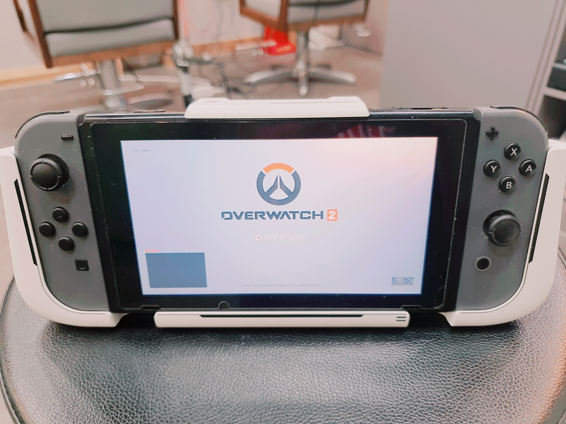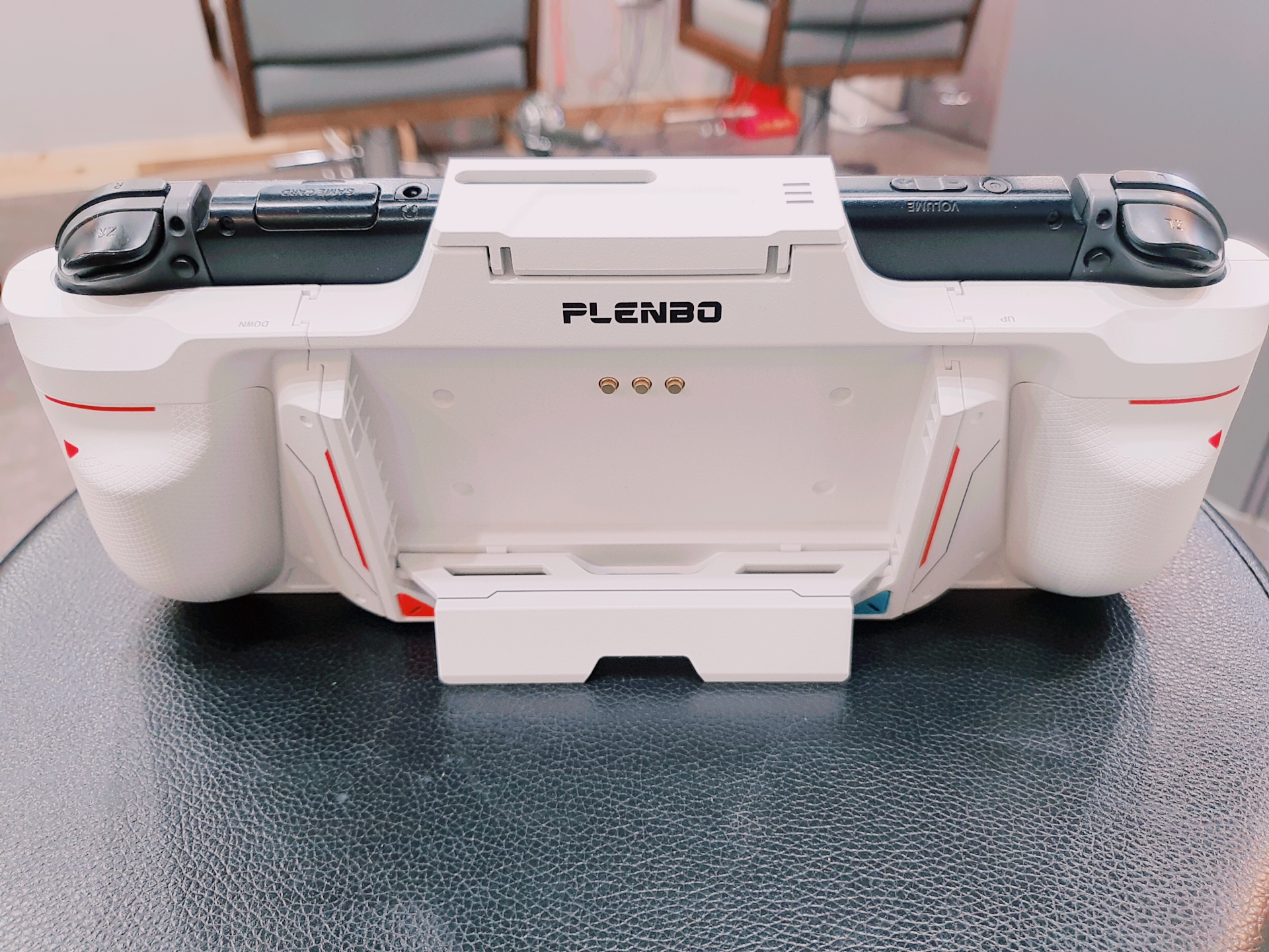 뒷모습입니다.현재 아직 스위치 전력이 남아있어 배터리는 뺀 상태입니다. 케이스 자체에 아래 거치가 가능해서 세워둘 수 있습니다. 배터리는 굳이 매번 끼워둘 필요는 없는게 전력이 부족할 때만 끼우면 되고 배터리까지 끼우면 무게가 상당히 늘어납니다. 그리고 이 케이스를 구입한 또하나의 이유가 저 빨갛고 파란 버튼인데, 케이스 자체에 블루투스 오디오 연결 기능이 있습니다. 한번에 두개까지 되는 거 같은데, 스위치 기본 블루투스 오디오 기능이 영 아닌지라 케이스에서 더 성능이 좋네요. 일단 하나 먼저 연결해봤는데, 잘 됩니다. 다만 음질은 제 귀가 그닥 고급이 아닌지라 잘 구별은 안되네요.