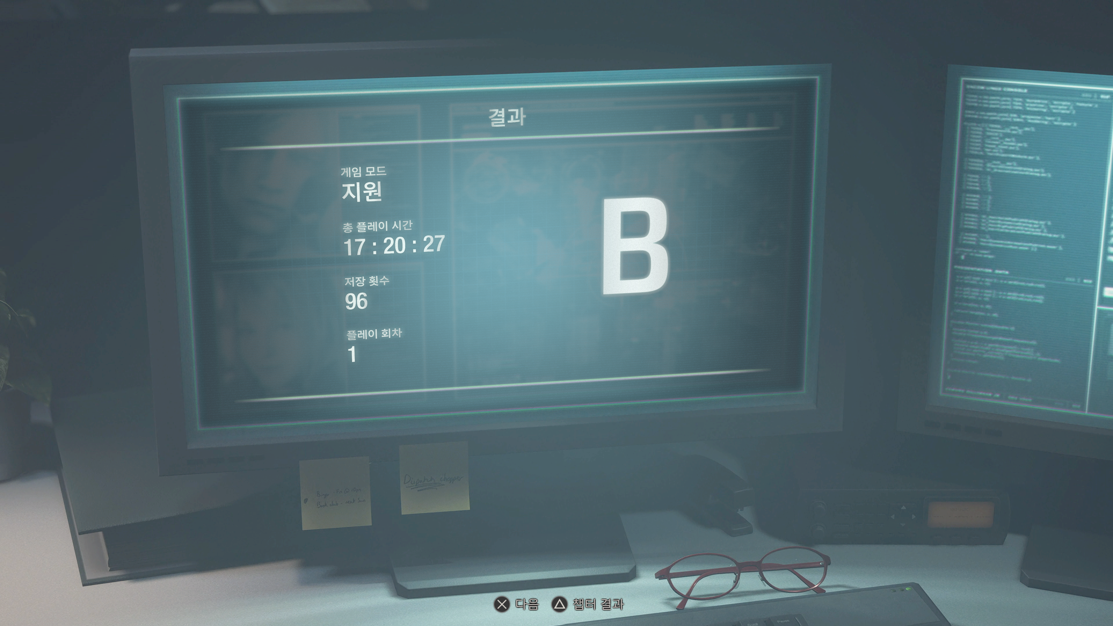 확실히 RE3에서 혹평을 받아서인지 이번에는 힘을 주고 만들었다는 느낌이 납니다. 클리어는 했지만 엔딩 후 컨텐츠도 있으므로 또 도전해봐야겠네요.